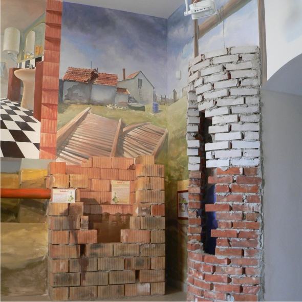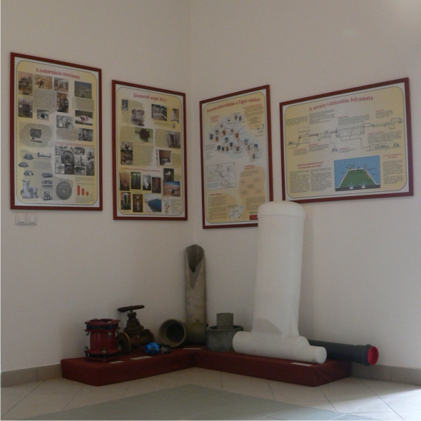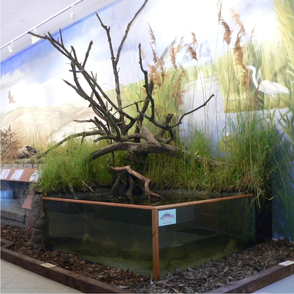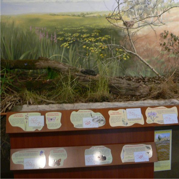Az épület előterében a Tápió mente vízrajzi térképe tárul elénk, feltüntetve azokat az élőhelyeket, melyeket a kiállítás részletesen is bemutat.