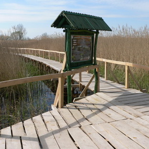 A tanösvény 2007-ben épült, a farmosi Nagy-nádas élővilágát mutatja be a nád sűrűjébe hatolva. Az oszlopokon álló, 200 méter hosszú pallósoron igazi kaland végigsétálni, miközben bepillantást nyerhetünk a nádas belső életébe. A pallósor mentén három információs tábla nyújt érdekes információkat a mocsár rejtekében élő növény- és állatvilágról, valamint megismertet minket a mocsár és a Hajta-patak történetével is. A pallósorról lesétálva a földút mentén gyakran találkozhatunk a barna ásóbéka vagy a tarajos gőte példányaival. Ne bántsuk őket! A tanösvény szomszédságában áll az egykori gátőrház, itt tavaszi időszakban hétvégi napokon, valamint júliustól októberig madárgyűrűző tábor működik. A tábor előzetes bejelentkezés alapján fogad csoportokat, de szívesen látja azokat az önkéntes segítőket is, akiknek van kedvük bekapcsolódni a munkába, és alaposabban megismerni a gyűrűzés mesterségét.