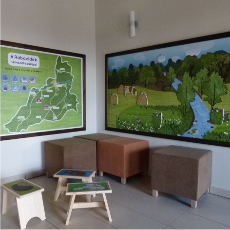 A gyereksarokban található tájkép mozdítható elemeit elforgatva a gyerekek megkereshetik a tájban rejtőző jellegzetes őrségi állatokat, a mágneses térképen pedig a helyükre illeszthetik a Rábavidék nevezetességeit.
