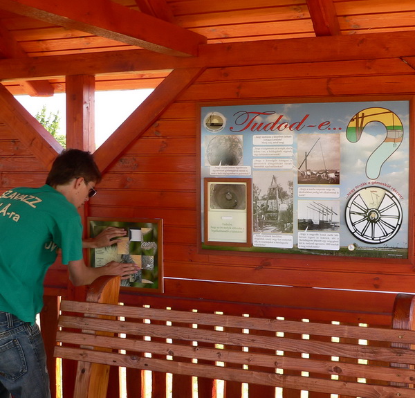 Nell'area di sosta possiamo leggere sulla fabbrica di laterizi, passeggiando sul tavolato giungiamo all'interno del canneto. Qui ci attende una casupola, da dove poter osservare gli uccelli, sui muri invece vediamo delle immagini in 3D. Una vera sfida è stato costruire il parco giochi Fattoria infernale (Pokoltanya) (GPS: N47 18.018 E19 58.918) dove abbiamo collocato anche statue a grandezza naturale di animali da fattoria. Il cavallo della zona del Mura, il somaro e i maiali mangalica sono interessanti già per le loro dimensioni. Per realizzare questo abbiamo pensato in primo luogo alle famiglie.