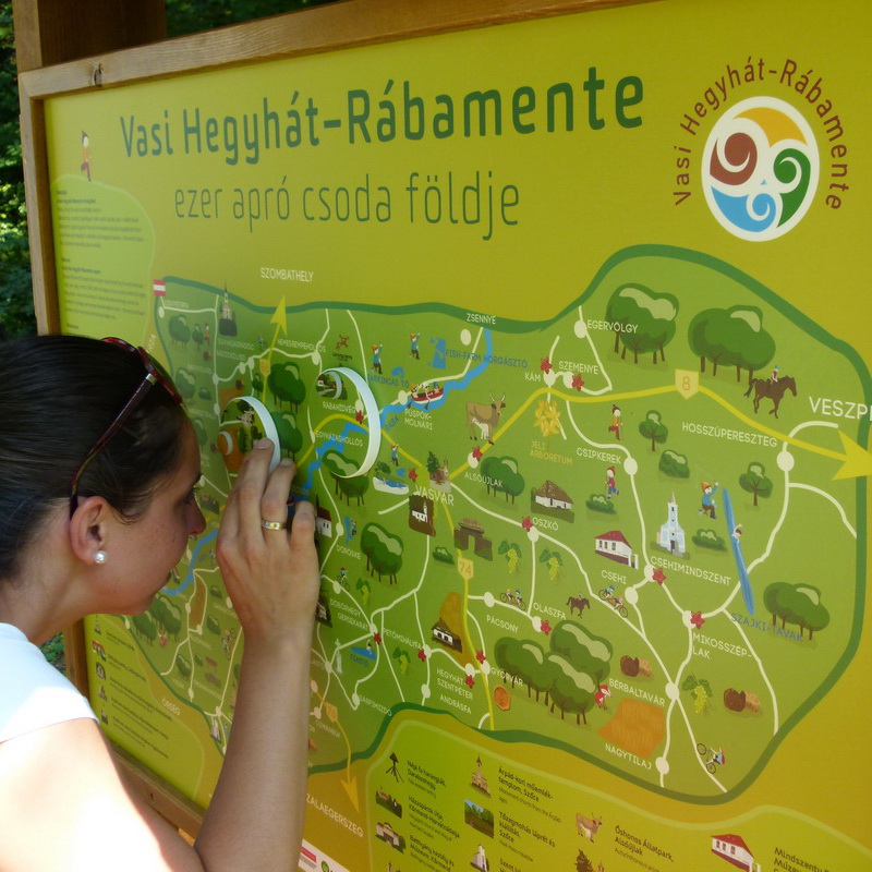 I pannelli presentano i monumenti e la cultura dei paesi, sono forniti di vari elementi interattivi, tra cui c’é anche uno degli elementi piú nuovi della Patkós Stúdió: i visitartori possono dare un’ occhiata all’ interno di una cassetta, dove si vedono altri monumenti e curiositá. Le cassette sono illuminate con lampadine led ad energia solare.